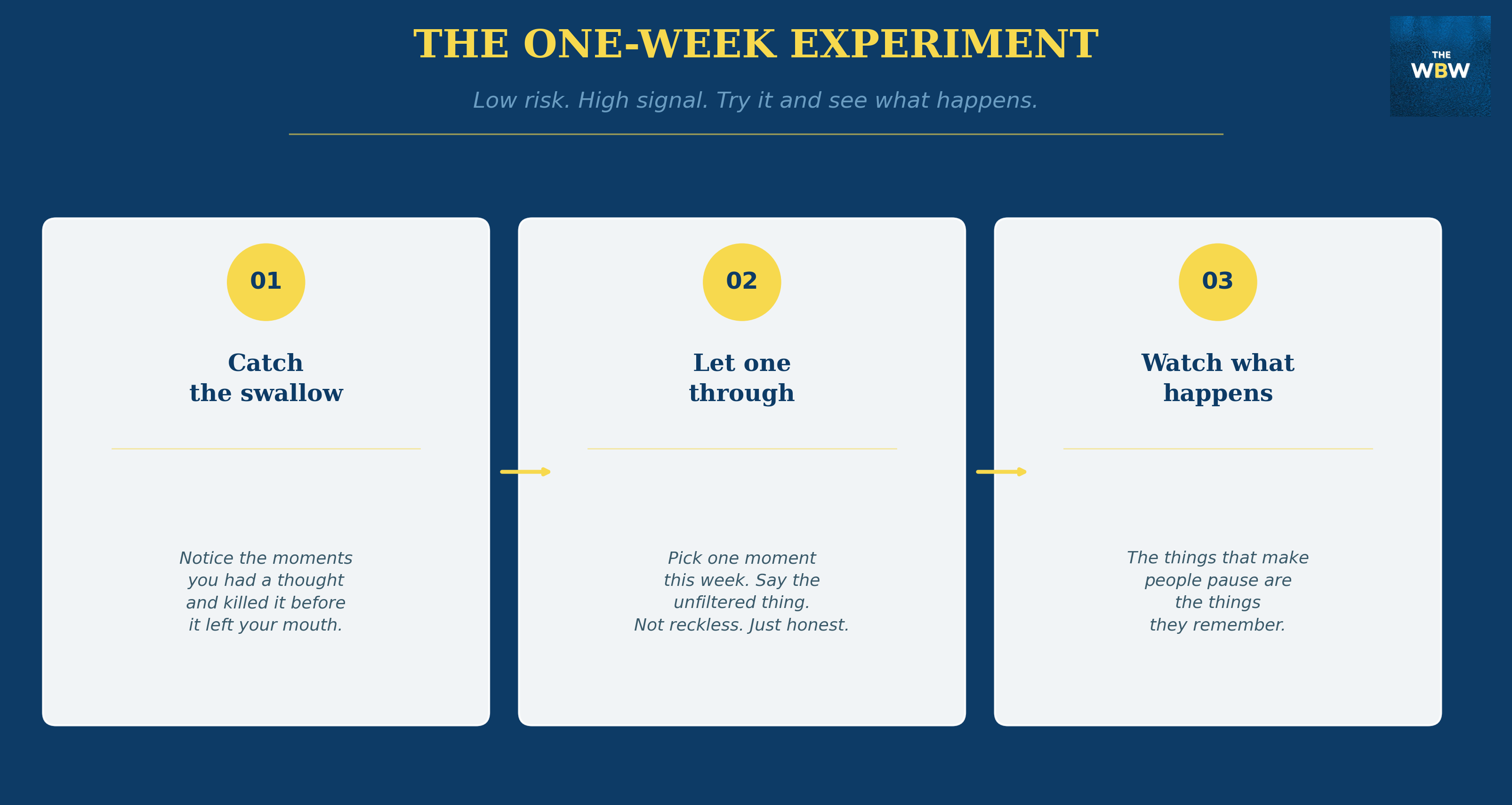 This isn’t a framework. It’s a one-week experiment. Light. Low risk. Try it and see what happens.